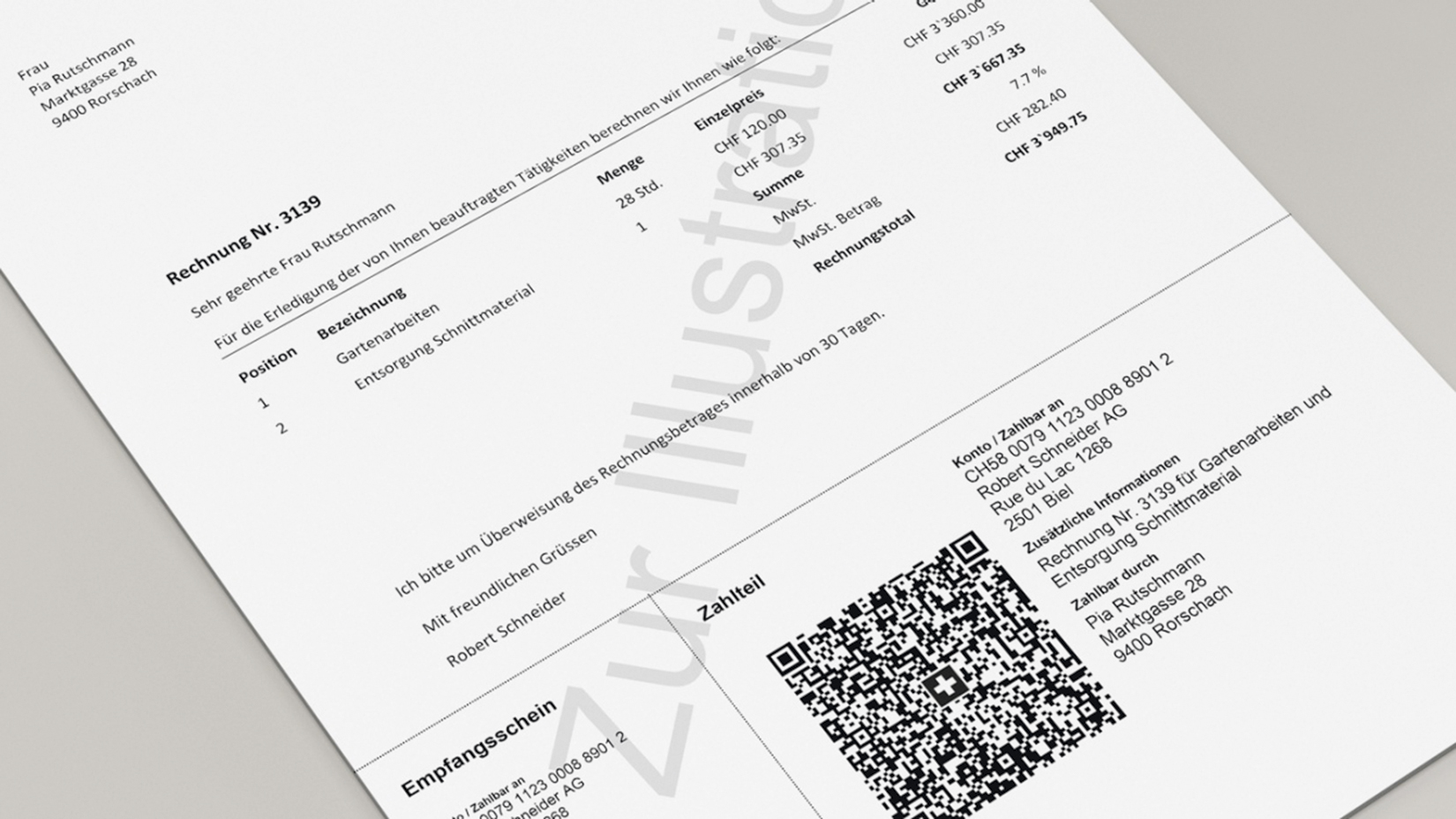 Auf Wunsch können wir Ihnen Muster der QR-Rechnungsformulare zum Testen Ihrer Software zur Verfügung stellen.