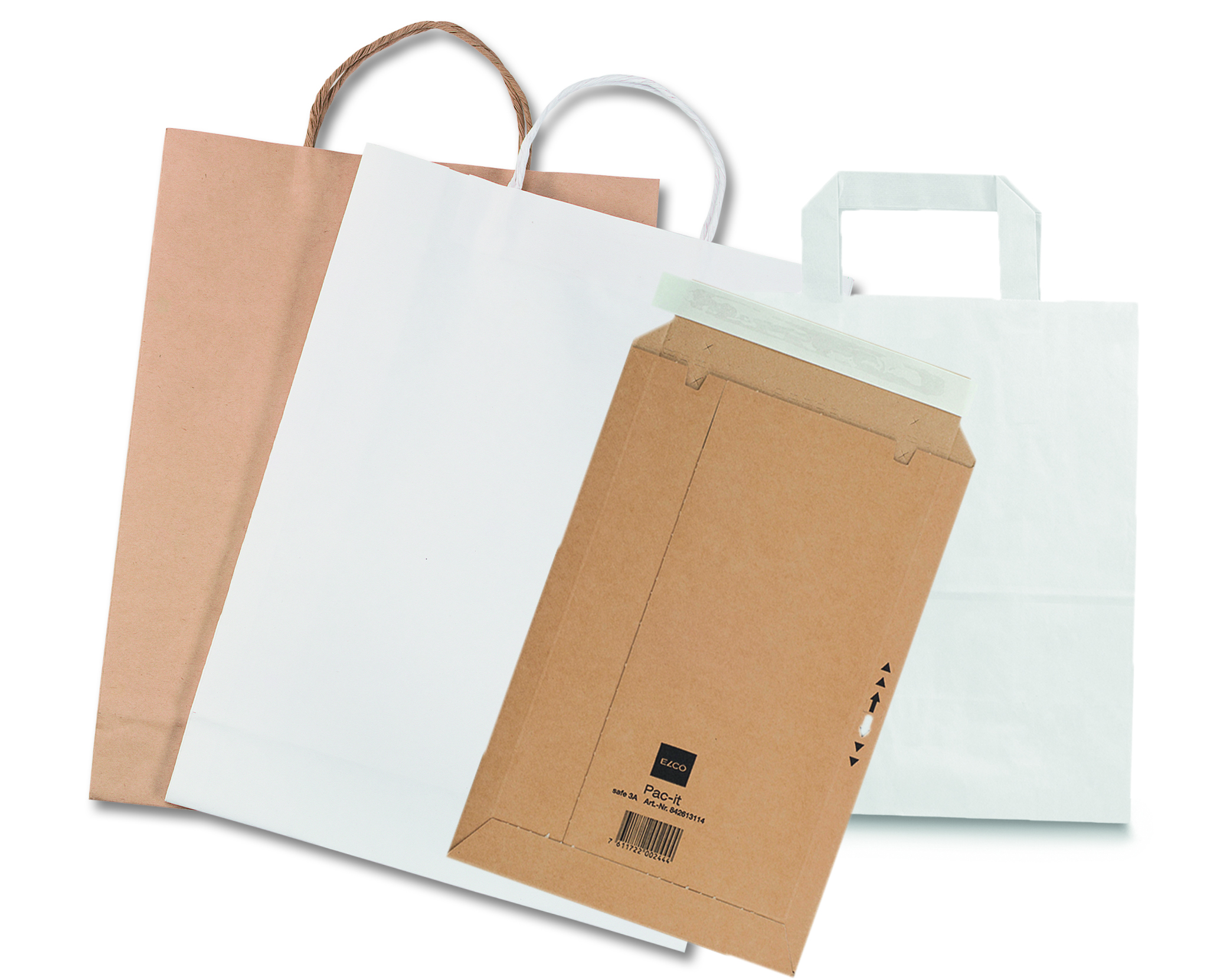 Der Umwelt zuliebe führen wir neu in unserem Sortiment stabile Tragtaschen aus Papier und Versandtaschen aus Karton.